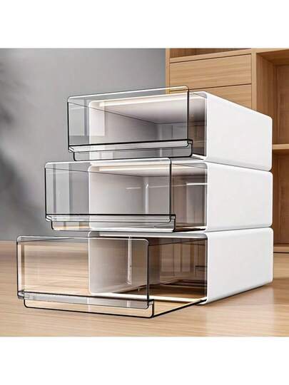 CASEGRACE 2/3件套可堆叠桌面收纳盒,文件整理抽屉,小型塑料抽屉柜,透明塑料可堆叠抽屉,适用于家庭、办公室、工艺品、铅笔等,桌面和抽屉收纳整理,家居收纳必备品 - 白色 - 查看 2