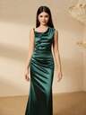 伴娘缎面修身细肩带褶皱开衩连衣裙,适合演出、庆典、生日、圣诞节、万圣节、毕业季