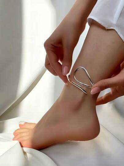 CHOSHILAR 1 件简约复古扭曲双层脚链,黄铜材质,优雅时尚可调节设计,适合女性,适合日常、派对穿着,是母亲节、毕业典礼、教师节、海滩度假的完美礼物 - 銀色 - 查看 1