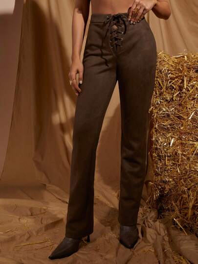 COSMINA 女士复古交叉带长裤,牛仔布,音乐节 - 咖啡棕 - 查看 1