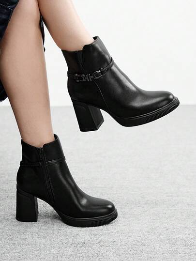 CUCCOO BIZCHIC 女士搭扣设计时尚日常通勤百搭高跟中筒靴 - 黑色 - 查看 1