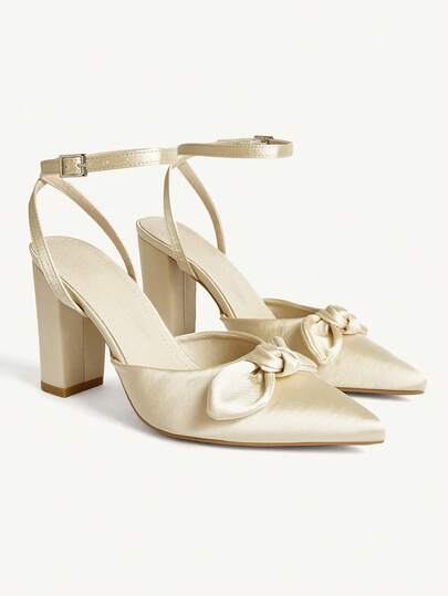 CUCCOO CHICEST 女士夏季新款蝴蝶结尖头高跟鞋杏色优雅休闲鞋 - 杏色 - 查看 1