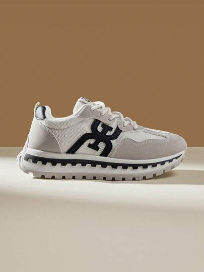 CUCCOO EASI 女式时尚浅灰色厚底圆头休闲运动鞋 - 白色 - 查看 1