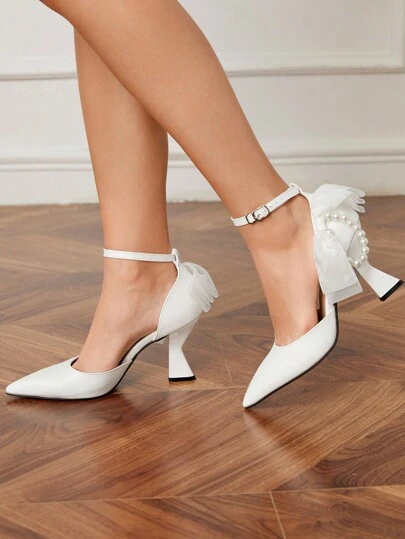 CUCCOO HITCHD 女士白色蝴蝶结高跟鞋,优雅适合通勤、约会、婚礼、办公室、派对和宴会