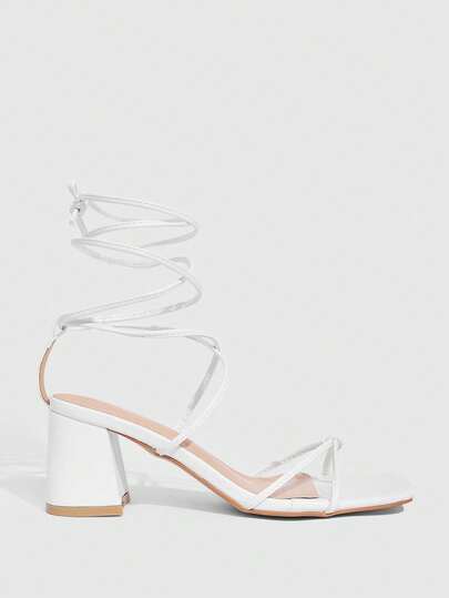 CUCCOO SZL 系带交叉粗跟女式凉鞋 - 白色 - 查看 1