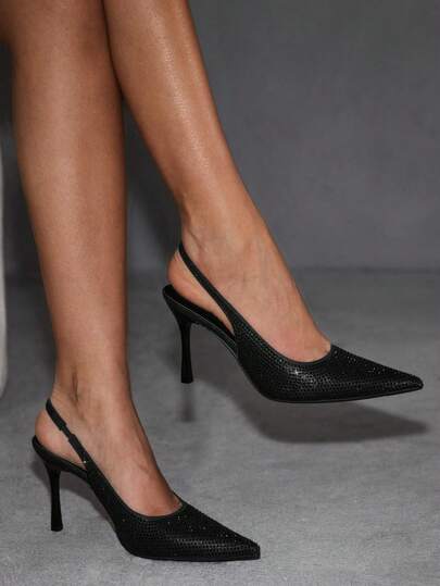CUCCOO SZL 性感时尚尖头水钻装饰高跟鞋,露跟派对礼服鞋,女士 - 黑色 - 查看 1
