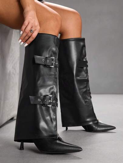 CUCCOO SZL 女士时尚尖头过膝高跟靴