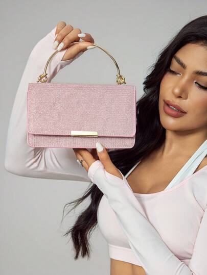 CUCCOO SZL 女士金屬手拿包,鏈條斜挎小方包,適用於晚宴派對,閃閃發光且時尚 - 粉色 - 查看 1