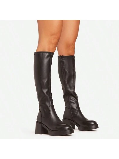 Ego Caesar Chunky Block Heel Knee High Long Boot In Black Faux Leather - 黑色 - 查看 1