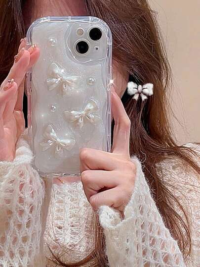 优质优雅蝴蝶结白色手机壳适用于 16/16 Pro Max/16 Pro/16 Plus/16E/15/15 Pro Max/15 Pro/15 Plus/11/12/13/14 Pro Max/XS/XR/11 Pro/11 Pro Max/12 Pro/12 Pro Max/13 Pro/13 Pro Max/14 Pro/14 Pro Max/14 Plus/12 Mini/13 Mini,创意软壳适合女性 - 白色單殼 - 查看 5
