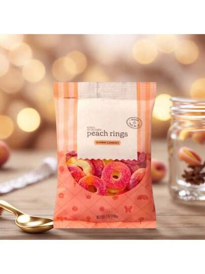 Sweet Peach Gummy Rings Candy, 7oz Bag, Soft Chewy Fruity Snacks For Kids Party Favors, Movie Night Treats, Office Dessert - 預設 - 查看 1