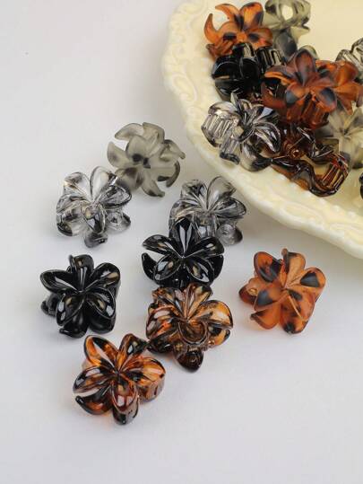 20 件随机颜色迷你光泽哑光豹纹雏菊花发夹,百搭可爱刘海侧夹适合休闲、派对、节日发饰女士爪夹秋季配饰秋冬度假装女士 - 彩色 - 查看 1