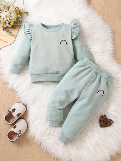 寶寶女孩彩虹刺繡荷葉邊運動衫和運動裤 - 薄荷綠 - 查看 1