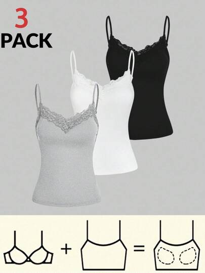 SHEIN Essnce 3 件套夏季蕾丝拼布吊带背心 - 淺灰色 - 查看 1