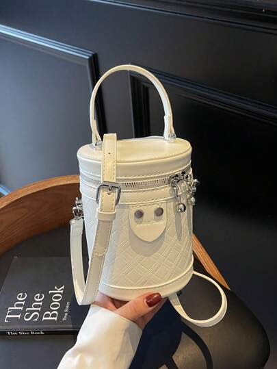 2024新款撞色棕色手提包,简约纯色迷你女士单肩斜挎包 - 白色 - 查看 1
