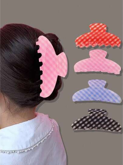 1 件儿童可爱简约格子按扣发夹,时尚发饰 - 彩色 - 查看 4