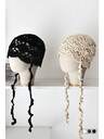 1 件法式蕾丝帽檐草帽,优雅纯色镂空编织太阳帽,带蕾丝丝带,适合海滩、户外、野餐、夏季