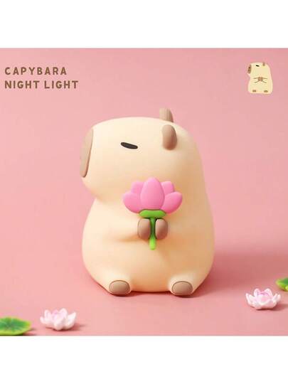 水豚夜灯 - 可调节亮度触控硅胶夜灯,USB充电卧室灯,可爱水豚造型,房间装饰趣味礼物 - 彩色 - 查看 1