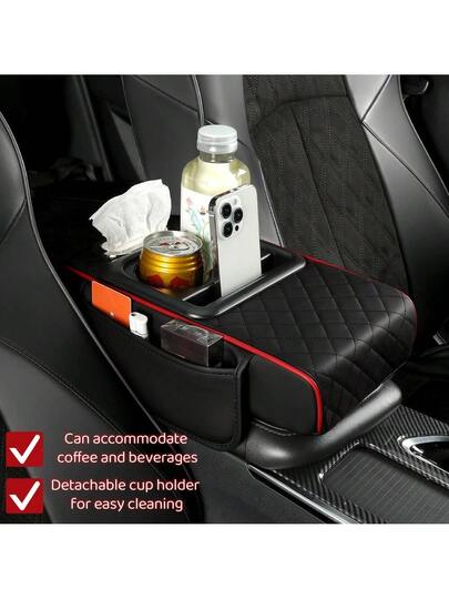 汽车中控台扶手枕手臂支撑套,加厚扶手垫,尺寸 13 英寸 * 7 英寸,厚度 3 英寸,可拆卸杯架,方便清洁(可容纳咖啡杯和可乐饮料),汽车内饰配件 - 均碼 - 查看 13