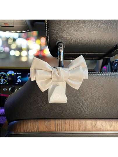 1入組汽車掛鉤座椅背部掛鉤,高級皮革可愛蝴蝶結實用汽車內部小掛鉤,適用於新款汽車禮物 - 白色 - 查看 1