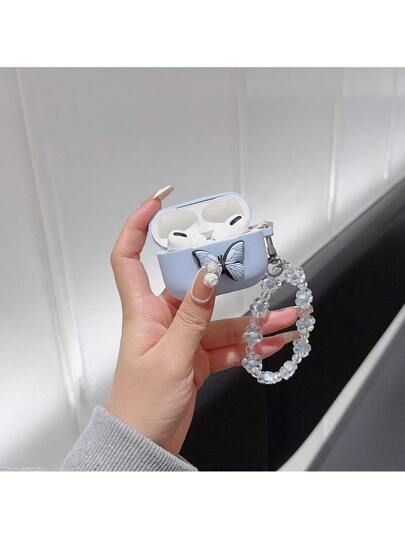 卡通蝴蝶挂链蓝牙耳机保护套,兼容苹果 - 淺藍色 - 查看 1