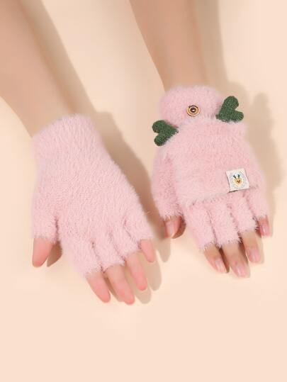 卡通圖案毛茸茸手套 - 粉色 - 查看 1
