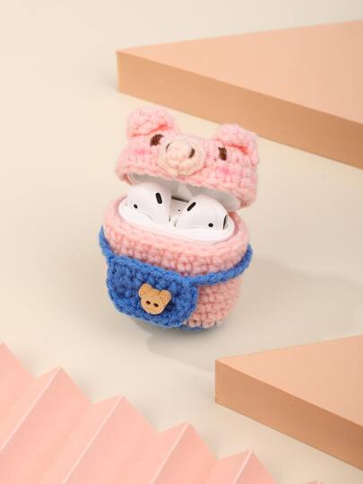 卡通豬設計勾織耳機殼適用於Airpods - 彩色 - 查看 1