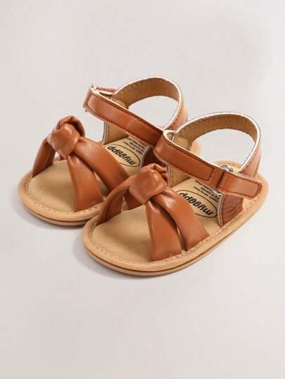 适合女婴的休闲纯色露趾凉鞋,夏季透气轻便步行鞋 - 棕色 - 查看 1