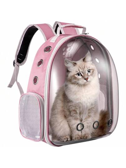 Cat Backpack Carrier – Transparent Bubble Space Capsule Pet Backpack With Hard Shell Dome, Mesh Ventilation & Padded Straps For Hands-Free Travel - 粉色 - 查看 1