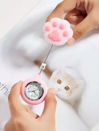貓爪設計護士石英表胸針 - 銀色 - 查看 1