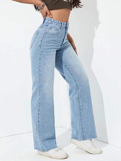 SHEIN EZwear 貓須直筒牛仔褲 - 淺色水洗藍 - 查看 1