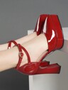 女士高跟厚底鞋,踝带扣粗跟鞋,有粉色、米色、裸色、酒红色、黑色、白色、红色、银色、金色、棕色可选,时尚正装鞋