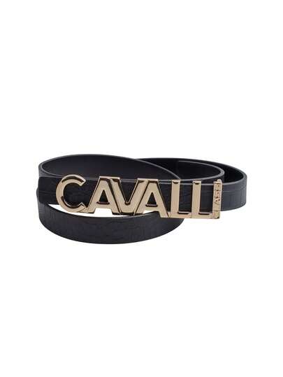 Cavalli Class Women's Logo Leather Belt Black - Black and Gold - 查看 1