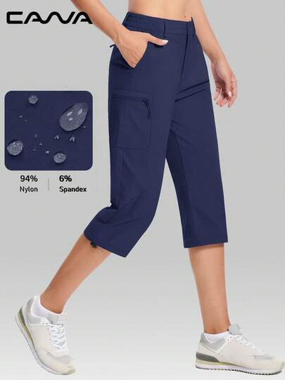 Cavva 女式防水七分裤透气速干轻便柔软中腰弹性侧边可调节袖口 5 个安全口袋徒步裤露营休闲 - 藏蓝色 - 查看 3