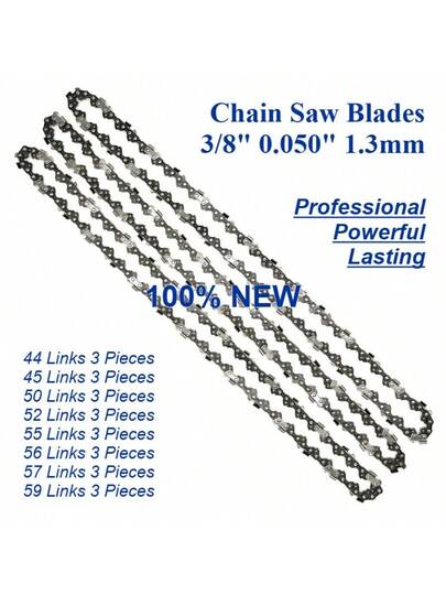 链锯锯片 3 件锯链半凿适用于 3/8 英寸节距 1.3 毫米规格 44 45 50 52 55 56 57 59 驱动链节可用 - 淺灰色 - 查看 5