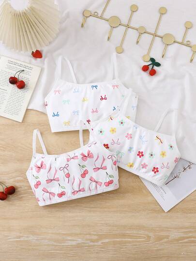 Chatreadl 三件套可爱休闲少女文胸吊带印花图案清新简约适合所有季节 - 彩色 - 查看 5