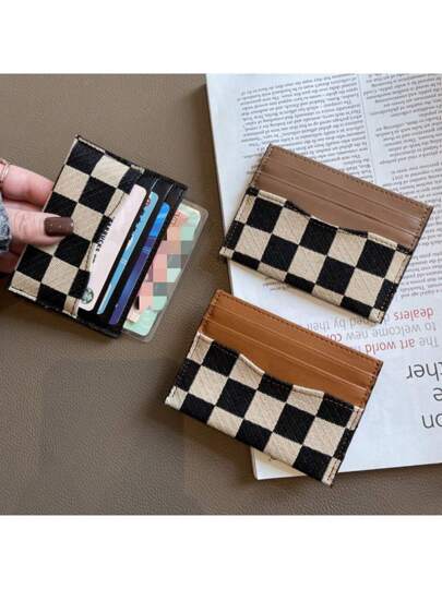 格纹一体式超薄优质帆布时尚高端新款时尚卡片盒礼品卡夹钱包名片夹信用卡夹女士女士迷你钱包卡片钱包 - 彩色 - 查看 1