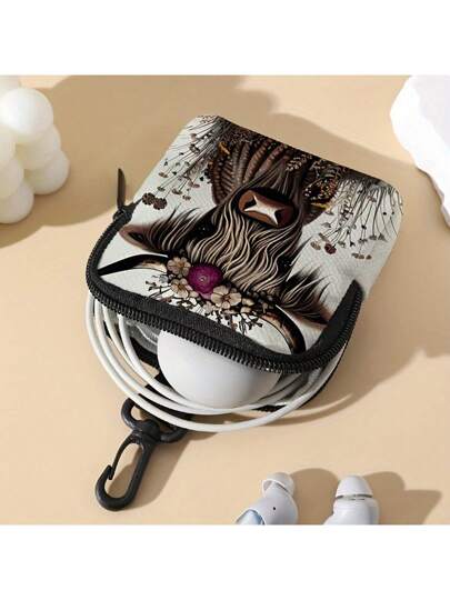 别致高地牛印花大容量仿皮钱包 - 防水,多功能,带拉链零钱包、钥匙和卡夹,以及无线耳塞存储数据线小挂包充电器便携包电缆整理盒行李旅行包电缆包电子数据线床头存储适用于旅行 Airpods 相机收集女性男性儿童圣诞礼物必备教师用品防水轻便大容量便携式配件