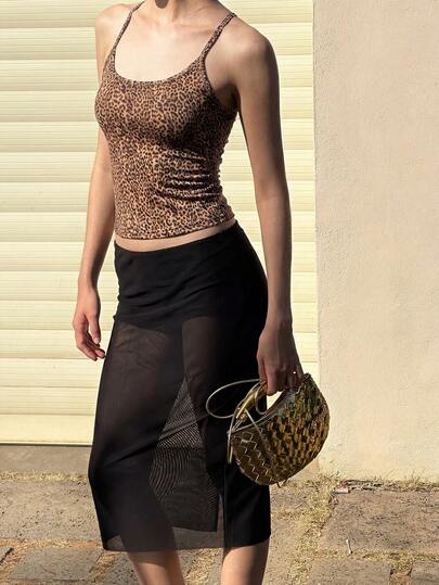 时尚豹纹针织无袖上衣,适合约会、街头、返校派对、单身派对等场合,夏季修身休闲吊带衫。