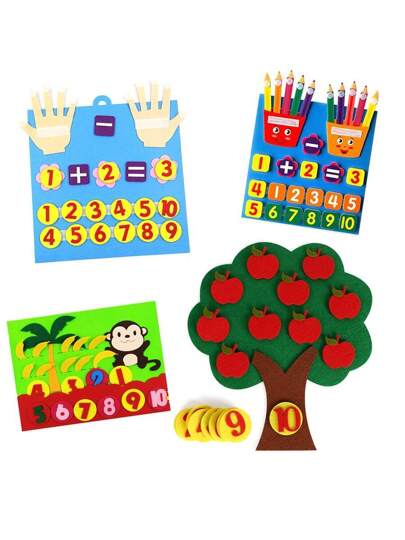 孩子們教育性毛氈工藝成套工具-手工DIY玩具-猴子採摘香蕉帶蘋果毛氈材料 - 彩色 - 查看 1
