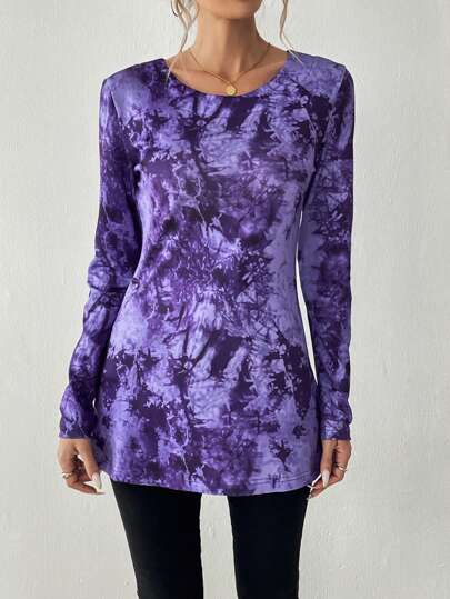 Chiquease 1 件扎染印花长袖休闲上衣,秋季