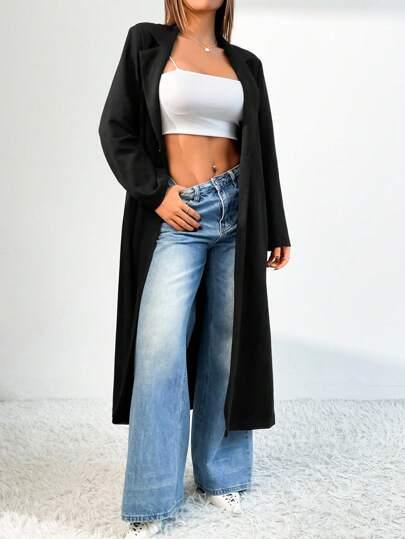 Chiquease 1 件女式宽松黑色长款绒面革外套,高端休闲外套 - 黑色 - 查看 1