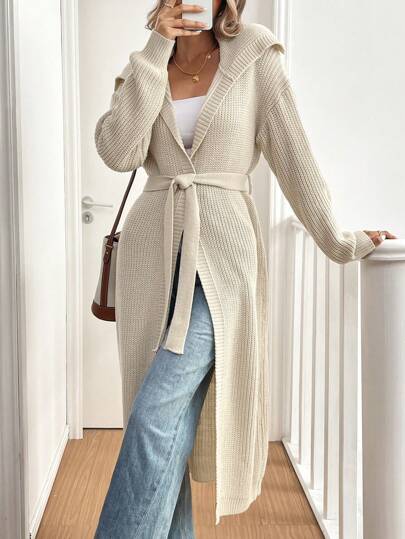Chiquease 女士纯色简约休闲连帽开衫、长袖上衣