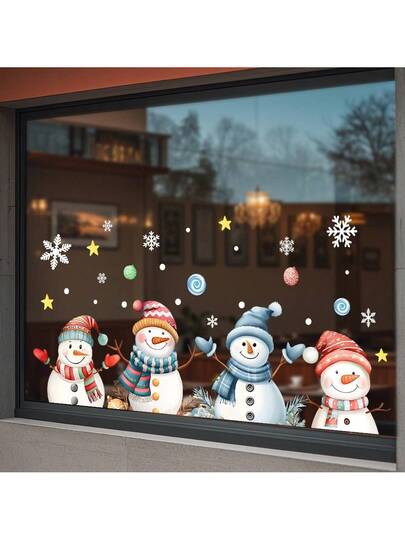 圣诞节装饰雪人窗户贴纸,冬季雪花玻璃窗户门窗贴纸可移除装饰,适用于室内外家居节日派对店铺玻璃装饰 - 彩色 - 查看 10