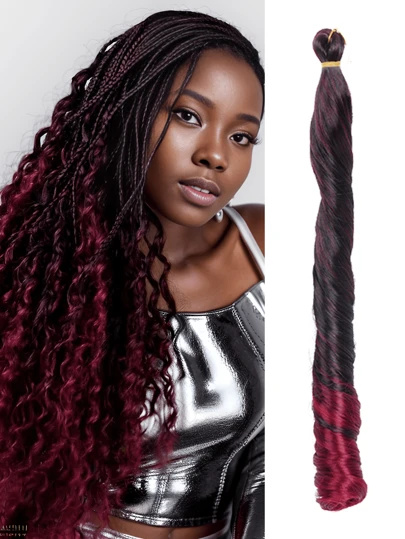聖誕新年禮物配件合成法國捲曲擴展藍黑巧克力棕色灰色bug綠色多彩螺旋捲曲鉤針編織髮高溫鬆散波浪捲髮飾女性日常假期和cosplay用的編織頭髮,22 英寸 150 克/束,1 包裝