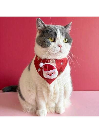 圣诞宠物头巾项圈套装,节日主题猫狗头巾,饰有圣诞老人、雪人和驯鹿图案,可调节,节日宠物配饰,冬季圣诞服装 - 彩色 - 查看 1
