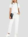 女士休闲通勤圆领修身短袖多口袋松紧腰裤护士制服工作服,适用于护士、牙医、医疗保健、宠物医院、实验室、美容院