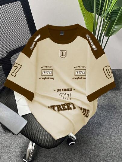 Claim Dot 男士街头时尚印花圆领短袖T恤 - 卡其色 - 查看 1