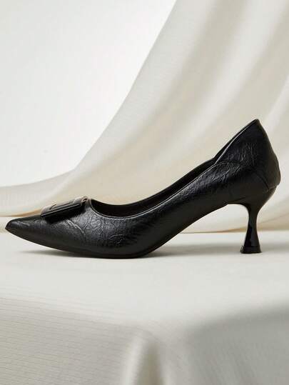 Clariva 仿珍珠装饰尖头粗跟踝带高跟鞋,黑色派对细高跟鞋,蝴蝶结细节和纯色踝带,女士圣诞节冬季礼物 - 黑色 - 查看 1