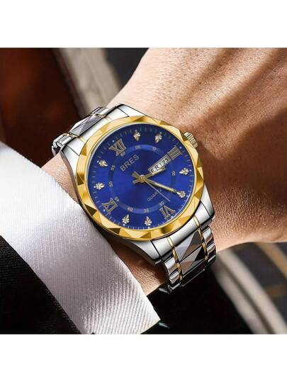 Classic Men's Watch Calendar Week Multi-Functional Fashion Atmospheric Men's Watch Business Watch 1 Piece - 間金 - 查看 1